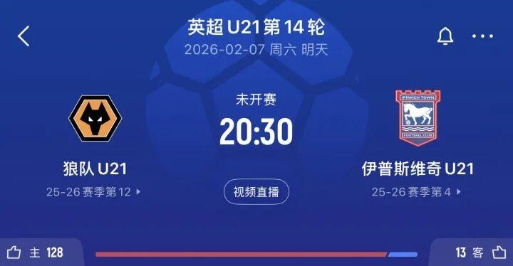 巴恩斯利目前26轮10胜7平9负积37分,排名英甲第14位,但是少赛3轮。北京时间2月7日23时01分,巴恩斯利将在英甲第31轮中客场挑战博尔顿。不过据直播吧消息,北京时间2月7日20点30分,英超2联赛狼队U21队主场对阵伊普斯维奇U21队,狼队U21队临时主教练柯林斯已计划将徐彬安排在本场比赛的首发阵容之中,这也意味着徐彬将在明晚迎来自己的英伦首秀。