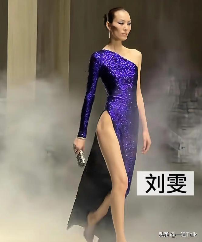 紧身的紫色亮片长裙,把刘雯的曲线,勾勒的完美无缺。